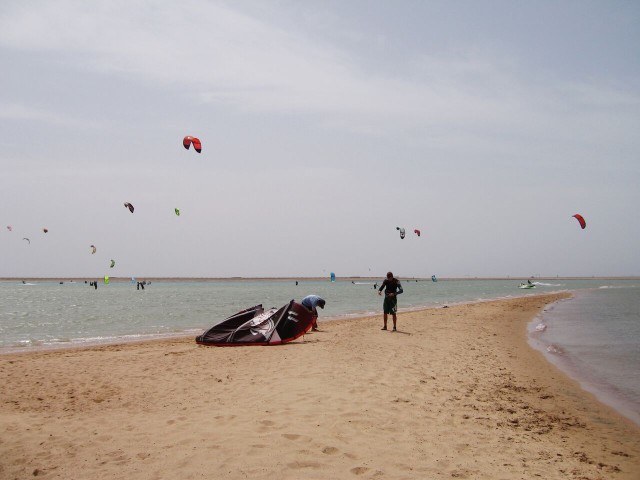 A shallow lagoon where you can stand up in most places. The instructor can be close to you, so it is the ideal place to learn. It is also great for intermediate kiters as it is surrounded by land, so it feels like a safe lagoon to learn and practice your skills. The main kite centres are next to the kite lagoon.