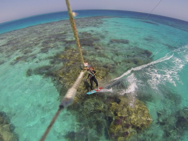 Hamata has just one spot which is very spacious. Kiting upwind you can get close to the mangrove forest or if you kite a bit further out you can get to three wonderful islands. The waist deep area is huge and makes this spot perfect for beginners. The spot has strong winds and flat to slightly choppy water. The water is always a bit more flat with low tide.