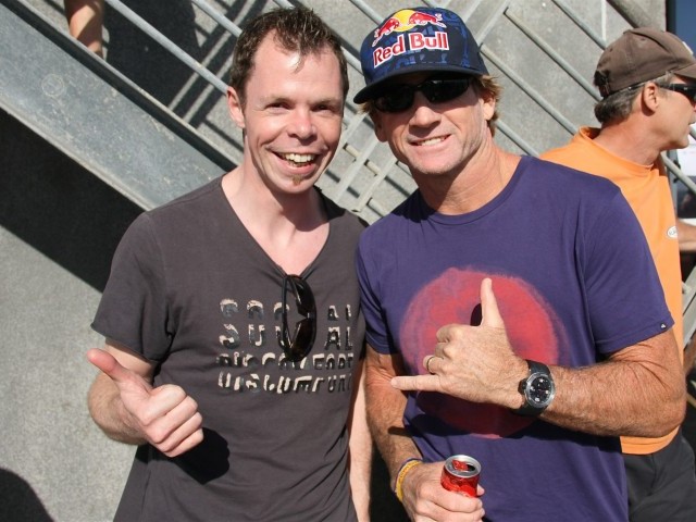 Stuart Downey stepped on to the top step of the podium with Naish teammates Vetea Boersma to the left and Tomas Aguirre to the right...