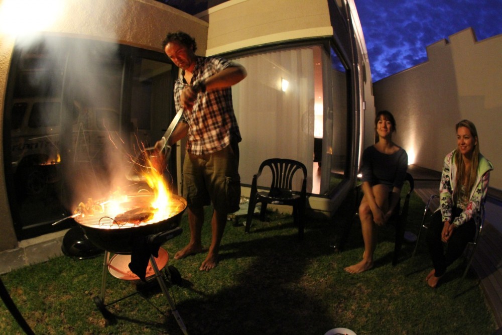 The climate here is immense. The day time temperature is in its high and dry 20’ to early ’30s, perfect for boardies, bikini’s and flip flops while in the evening it can cool down in the breeze and you might need a pair of jeans or a hoody. It makes for a good nights sleep as temperatures at night are cool and pleasant. The other thing to note is the sun is very strong, so a strong suncream is essential. The water temperature is cool and refreshing, so bring a 4 or 5mm wetsuit.