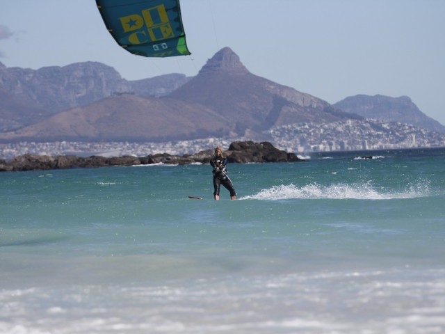 Things to note are: the beach for launching and landing can be small, particularly at high tide and there are some rocks to watch out for downwind. The wind is less reliable the further you head away from table mountain, so when Sunset beach is blowing Big Bay can often be between 5-10 knots less making it an excellent choice for the afternoons.