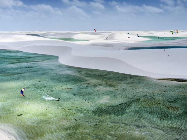In 2015 Craig Cunningham named Atins as his #4 favourite flatwater spot in the world. Located 600km west of Fortaleza, Atkins serves as an endpoint for many legendary downwinders. Set in the Delta of the River Preguiças the meandering river mouth creates ever-changing sandbanks and knee-deep lagoons. Along with its consistent strong winds, typical for these shores, kiters encounter perfect conditions in this part of the world. But Atins has even something more to offer! The village sits right at the entrance of the magical Lençóis Maranhenses, a unique landscape that mixes white dunes with rich underground water supplies, in itself a truly extraordinary spectacle to be experienced, even more so by kite!