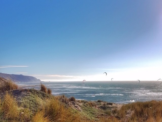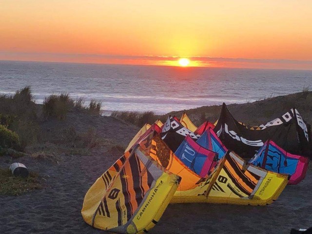 Even though we are located in central Chile, we get a lot of wind; cold wind, so if you are close to the beach and directly in the wind, make sure you bring a jacket; once you are out of the wind, you can sit around it your swimsuit and enjoy the sun; when it's windy, it's always sunny! You can kiteboard all year round here, but the best months are between August and January, with winds ranging from 20 - 30 knots and 15 - 25 knots for the rest of the year.