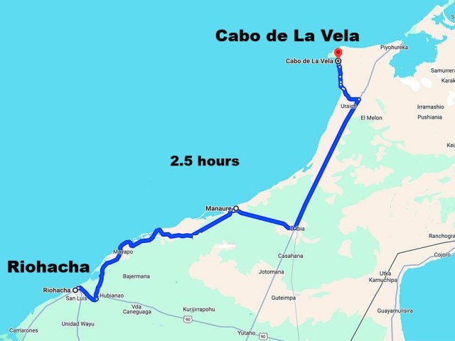 In La Guajira, upon arriving at the Riohacha airport or bus terminal, if you’re not staying and kitesurfing in Riohacha itself, you’ll need to hire a vehicle to reach the kite spots. The closest spot, Mayapo, is about 40 minutes away. Once you arrive at the kite spots, you won’t need to move around much since they are in the desert. However, Cabo de La Vela, a fishing town, has experienced rapid tourism growth recently, particularly in kitesurfing, with numerous kite schools now available. You can stroll around this beachside town to visit the kite schools, hostels, bars, and shops.
