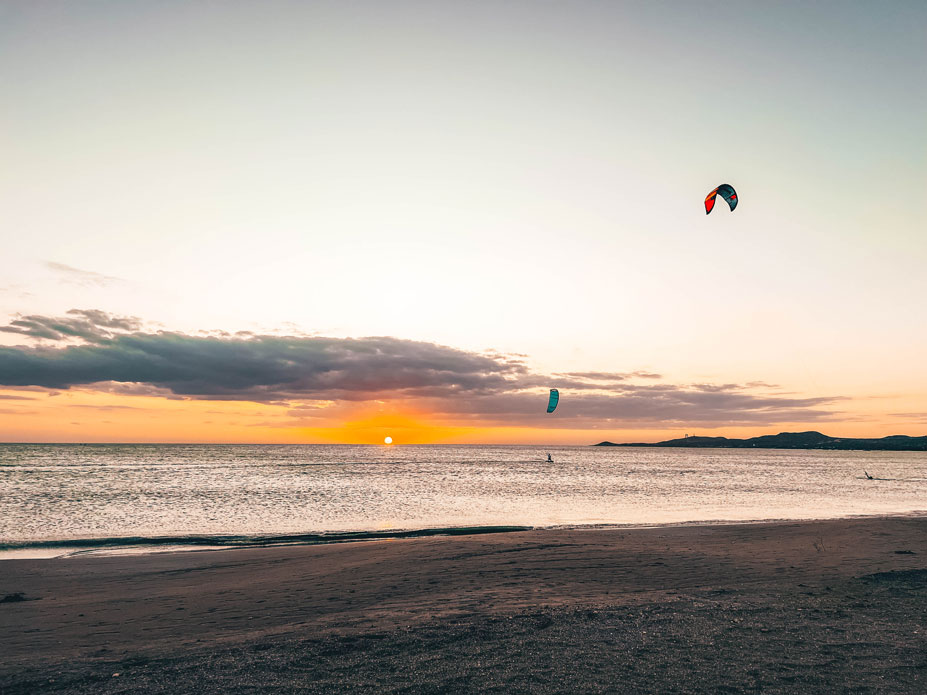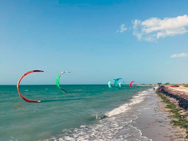Mayapo in the Guajira is a 40-minute drive north of the capital, Riohacha. It is known for its wide beaches, thick sand, and excellent kiting conditions. Mayapo has been steadily gaining popularity in recent years for local tourism and kitesurfing. It has gone from a desolate beach only five years ago to having hostels, restaurants, and, of course, multiple kite schools. Wind is constant 18-24 knots, with the NE wind being side-on. Waves are choppy, not too big, and they don’t break. Right next to Mayapo, there’s a lagoon called El Buey, which is flat and great for lessons and practising tricks while the NE wind kicks in.