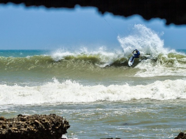 Further down to the left of the camp is the break known as The Point, this picks up big swells and peels perfectly for what feels like an eternity. You can pick the wave up out the back and then fade left to get deep before unleashing as it rolls past the rocky point. One of the best waves I have ever ridden, certainly a contender for best right-hand point break for kiting on the planet… There is no beach here, just rocks and a small cliff, so it is for confident riders only, if it goes wrong there is a rocky exit point if you miss that it’s a long swim to the fishing village!