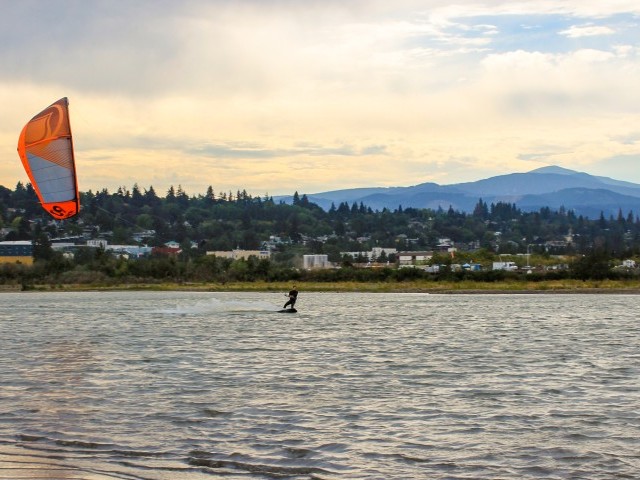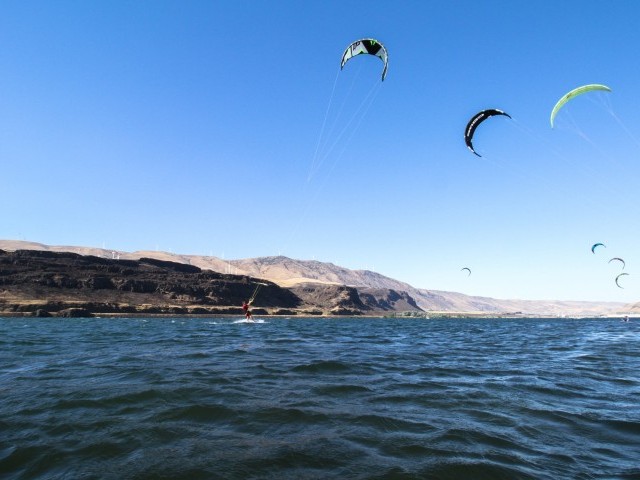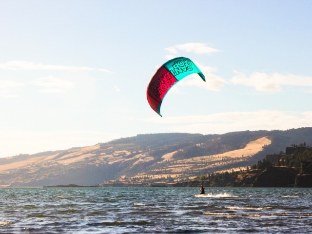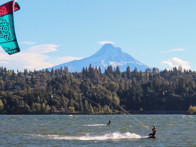 The windy months to go kitesurfing in Hood River are May, June, July, August, September