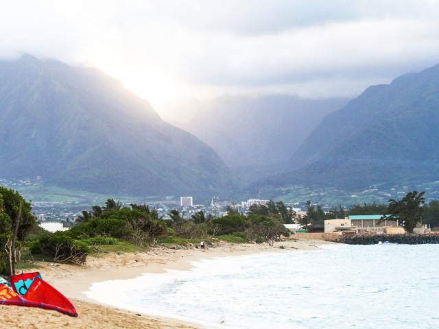 Maui has a reputation for being one of the most consistently windy locations in North America. The wind can be fairly strong, but it isn't always blowing off-the-charts. Plan on bringing your big kites and your small kites. The weather on Maui is warm, but not painfully hot. Some riders are more comfortable in a light wetsuit, and others do fine in just their board shorts. Be prepared to weather a little rain on Maui.