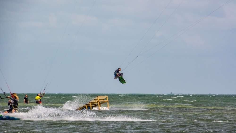 St. Pete is probably most famous for offering numerous flat water spots to kite. Next to the skyway bridge and in Ft Desoto park are the most popular, but there are much more as well. Waves are only present from strong wind swells and are common from our winter cold fronts, but can also happen throughout the rest of the year from tropical storms and depressions. When we do have the appropriate wind direction, simply put anything with some west in it, there are miles and miles of beautiful beach with great sand, beach bars, and restaurants. It is easy to find a spot in St. Pete to ride along many other kiters, but it is also easy to find a much more private or solo session! Foil kiting has also become very popular in St. Pete and the conditions for it are offered year round. Check out this link to see a recap of a recent Foil Regatta that took place on St. Pete Beach!