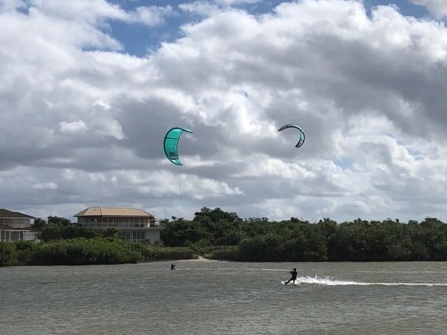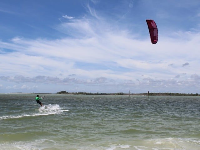 Florida gets the most wind in the fall, winter and spring. Tigertail will have the best wind from October through May. It can be a little chilly from late fall through the winter, so you’ll want a full wetsuit (a 3/2 should do it, and there will also be warmer days where a half-suit would work too). Whenever there’s any west in the wind, Tigertail is great, although you’ll be kiting in offshore conditions in the lagoon (but again, you can also walk across a thin strip of beach and kite onshore in the Gulf of Mexico).