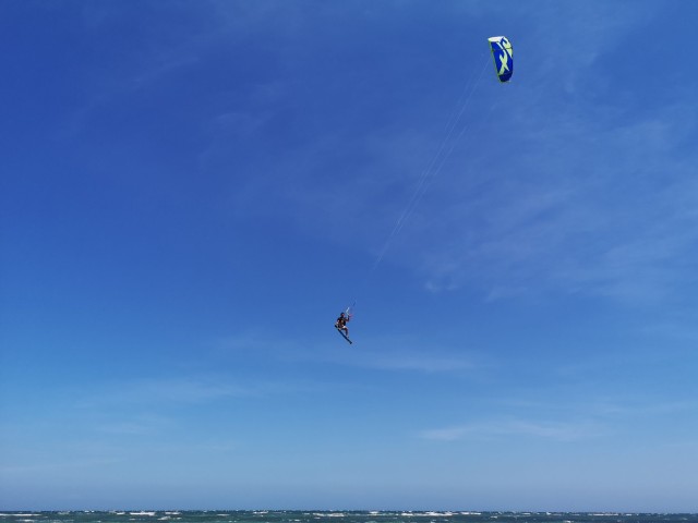 The sandy lagoon stretches over 2km with shallow, flat and clear water. The beach is extensive, offering a lot of space to launch and land your kite safely. It works at both high and low tides with the lagoon changing, but the fun remains the same! With small kickers at high tide and glassy water at low tide, you will never get bored by the sessions. It's an ideal spot regardless of your riding level, from beginners to experienced riders who want to push their limits with big air jumps and unhooked tricks.