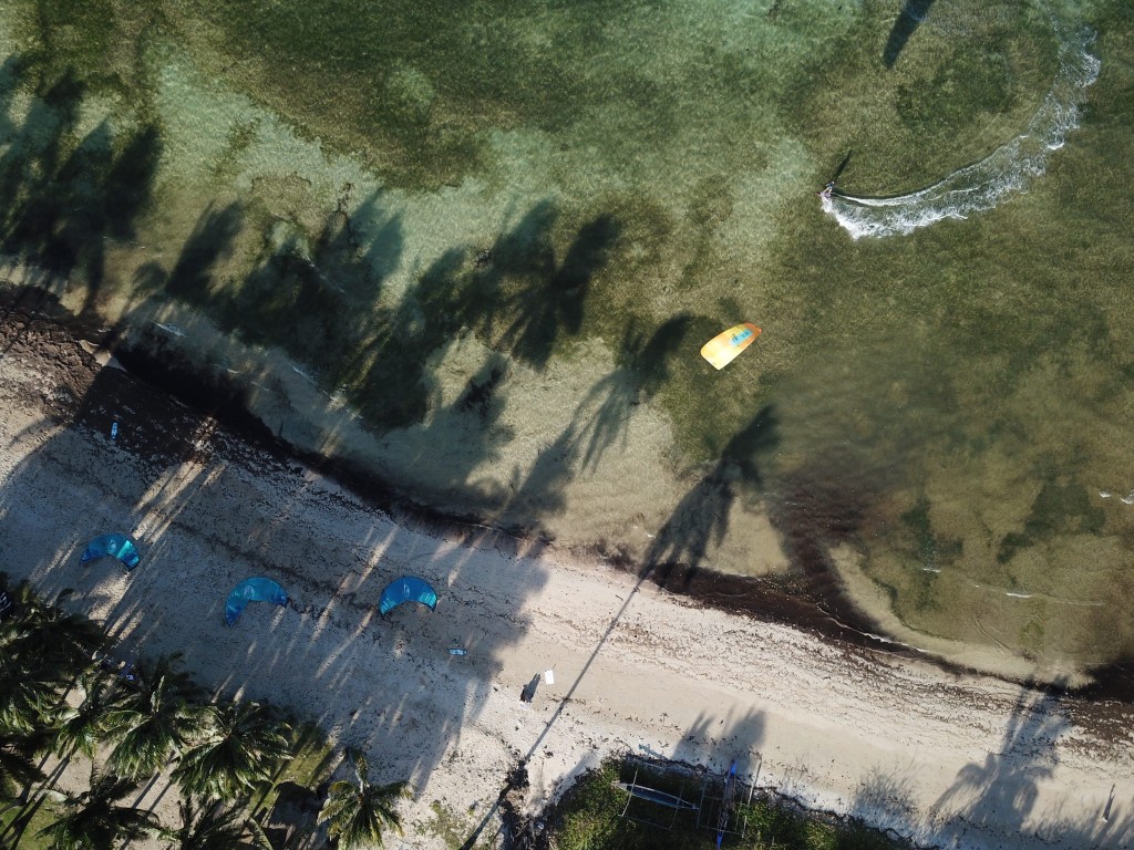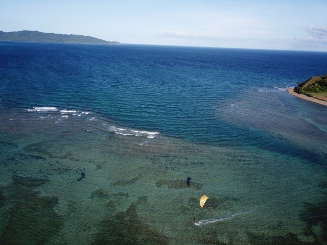 Bislig Beach is the main beach set up for kitesurfing. It isn't very big, but the resort can only hold so many visitors, so it will never be overcrowded. The water is a piercing crystal blue, not butter flat, but its charm makes up for this. Rows of palm trees line the edge of the beach, making a picturesque backdrop or kite-eating-monster material; however, you should choose to look at them. Just be careful when you launch. The spot becomes too shallow at low unless you want a sea urchin encounter - mid to high is best.