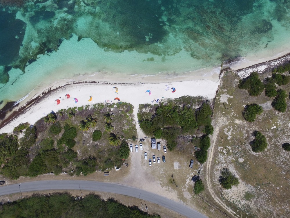 Jabberwock Beach is the main kite beach in Antigua. It’s a national park with beautiful palm trees, natural vegetation and turquoise waters that are warm all year round. Step out of your car and onto the beach where you can always find a friendly hand to help you launch or land your kite. With the side-on winds, it's perfect for learning and you can usually find a good mix of beginners to expert riders there. Water conditions are ‘bump and jump’ with some flatter spots behind the reef. There is also a small shore break that can be fun for smacking waves when conditions are favourable.