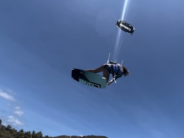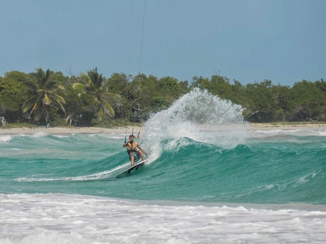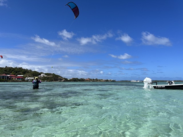 It’s a secret spot especially because it’s almost empty all of the time. It’s the most southern beach on the island, you can join it by car or walk from the famous beach called Les Salines (45 min). It’s a bit windier than on the windward coast, but the wind is not stable; you need to kite 100m away to get some classic wind.