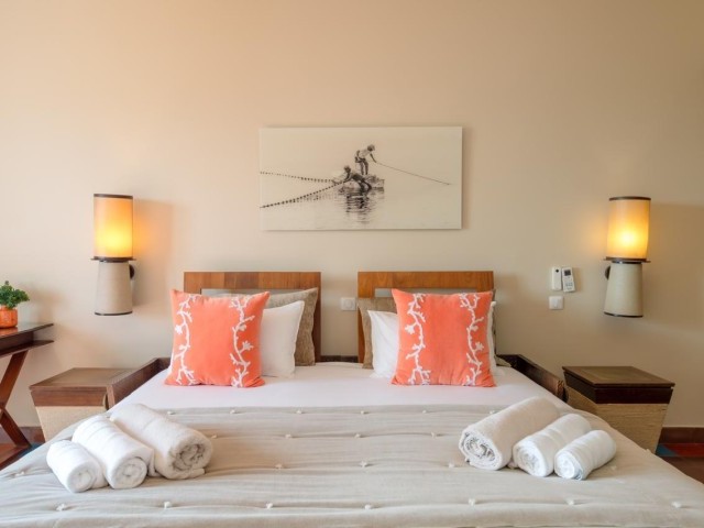 Nestled in a tropical park on the exceptional Cap Est peninsula and overlooking the lagoon, Emeraude Villas offers a collection of prestigious suites and villas tailored to your desires. Situated within the upscale complex, Les Villas du Lagon, these villas have been designed by a renowned French architect-designer, known for creating exquisite tropical chic furniture.