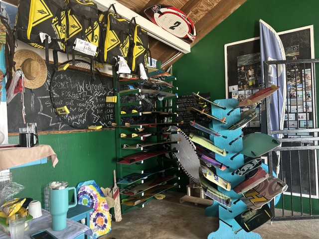 As I mentioned before, the spot is suitable for all kitesurfers, regardless of their level. With waves on the outer reef and flat water inside the bay, there are choices for kitesurfers who like to vary their sessions. If you want to travel light, the Surf Shack has loads of kit available for rental, including kites, twin tips, surfboards, wings, foils, and more. The instructors at Surf Shack are on hand for lessons and further coaching.