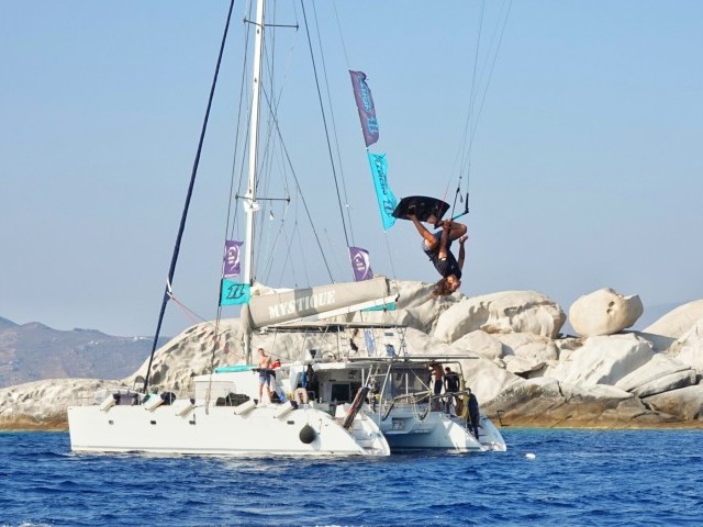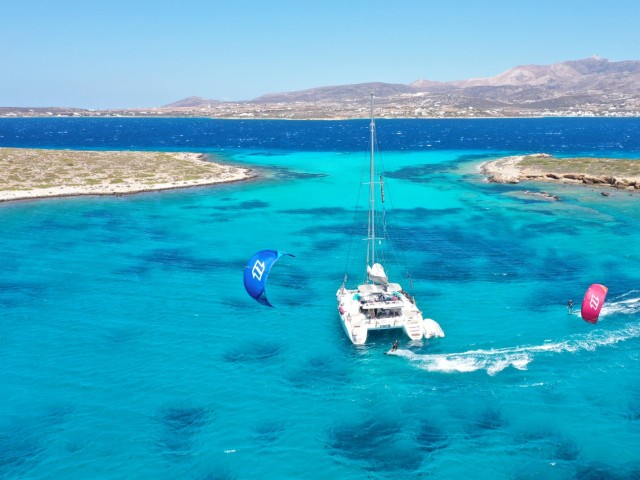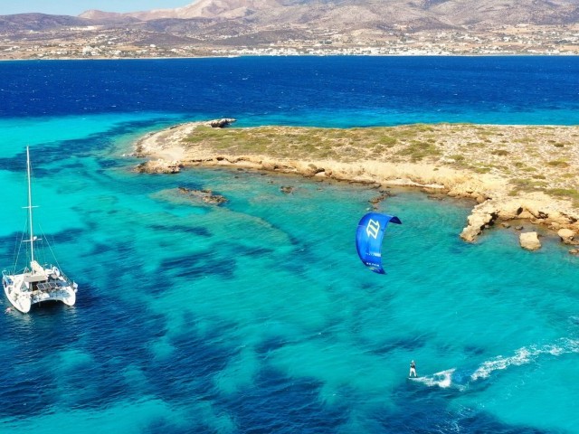 The Camp starts in Paros - Paroikia, and the catamaran will sail through central Cyclades islands looking for the best spots and conditions for kite sessions, lessons and coaching. We will kite in Paros, Antiparos, Small Cyclades, Mykonos, Rinia, Milos and other secret spots.