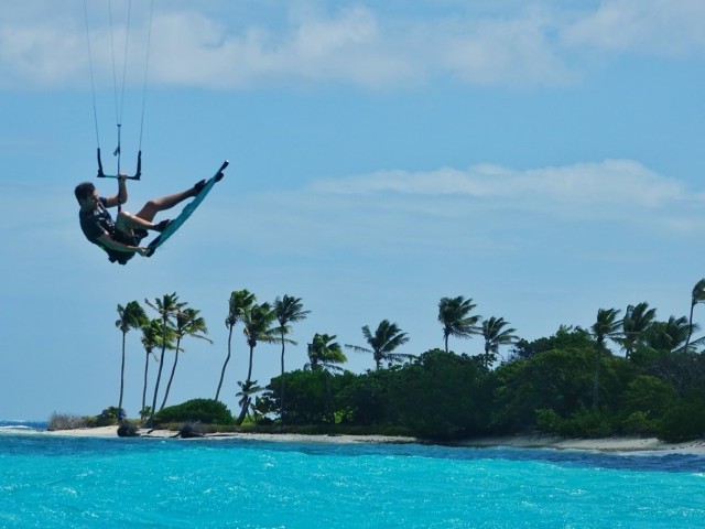 The windy months to go kitesurfing in The Action Cruise are May, June, July, August, September, October