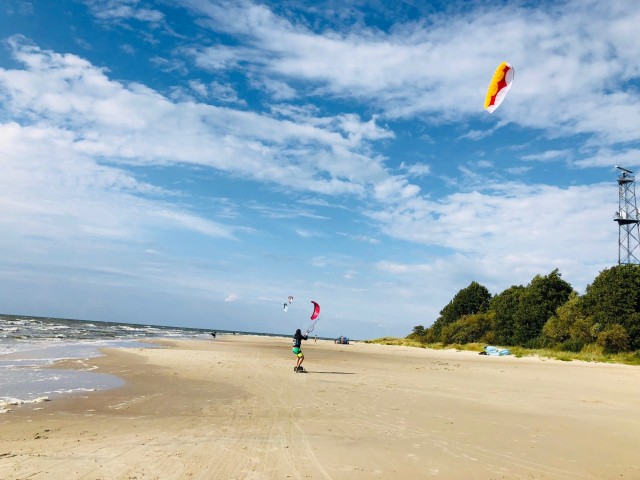 On the west coast of Lithuania lies Palanga, a popular spot on the Baltic Sea for kiteboarding, landboarding, SUPing and surfing. Eighteen kilometres long and up to 300 meters wide of sandy beaches, it is the busiest summer resort in Lithuania. The conditions can be pretty choppy and wavey, especially if the wind blows from the west, northwest or southwest (the waves range from 1.5 meters - to 4 meters). Palanga includes other cities like Šventoji, Nemirseta, Būtingė, and other settlements.