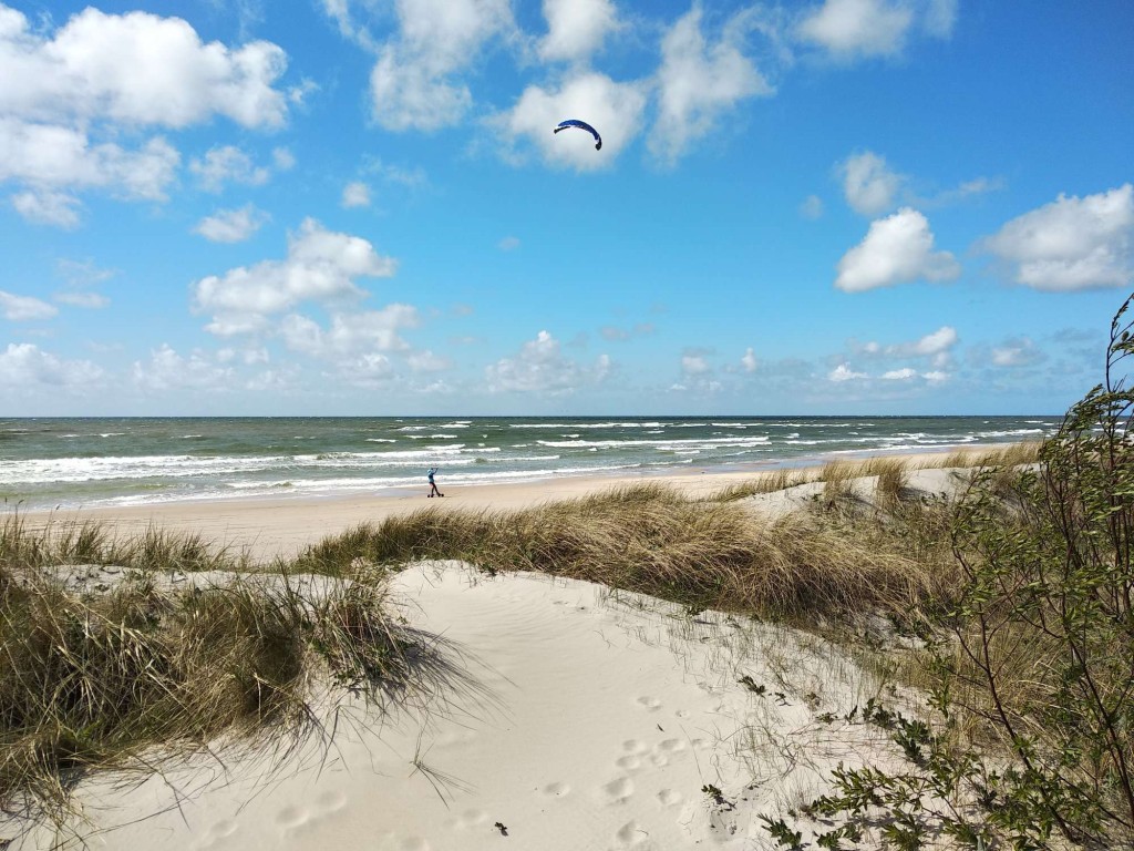 Similar to Nemirseta but if the wind blows from West or Southwest, waves ranging from 1.5m - 5m are possible! It's a big beach with lots of space for kites to safely launch and land, but during the summer months, keep in mind that there are lots of people sunbathing on the beach, so keep an eye out for them! Wetsuits are necessary all year round, and the average water temperature in summer is ~21°C.
