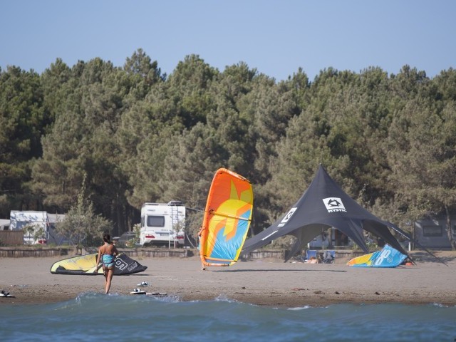 Due to the warm water, wetsuits are not necessary for the summer. A few kilometres downwind there is a river mouth with perfect flat water. All the freestylers among you will find the ideal conditions over there to improve your skills.