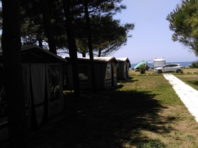 There is a huge, lovely wooden restaurant, with a beautiful view over the whole beach and the sunset at the camp on the beach. The prices for a pizza there is about 4€, draft beer 2,5€, octopus 12€, fresh Orada fish 12-15€, fresh shrimps 10-12€ and there is also a beach bar. During the week, you'll come across an open local market in town, where you can buy lots of fresh vegetables, fruits, fish, shrimps, local cheeses and Prsiuta ham.