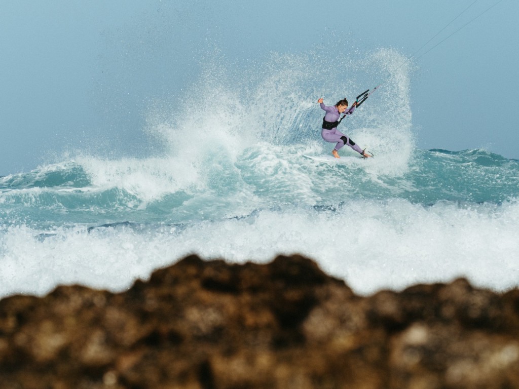 In addition to the materials used, kitesurfing surfboards are designed with various features to enhance their performance. For example, some surfboards have concave bottoms, which improve their stability and control. All boards will have rocker, which is the curve from the nose to the tail. Rocker affects the board’s speed, manoeuvrability, and stability, and different rockers are used depending on the surfboard’s intended use. A flatter rocker line gives more speed and early planing capabilities, while a curvier rocker is slower but better for carving. Some surfboards also have deep channels that provide additional grip and control in the water.